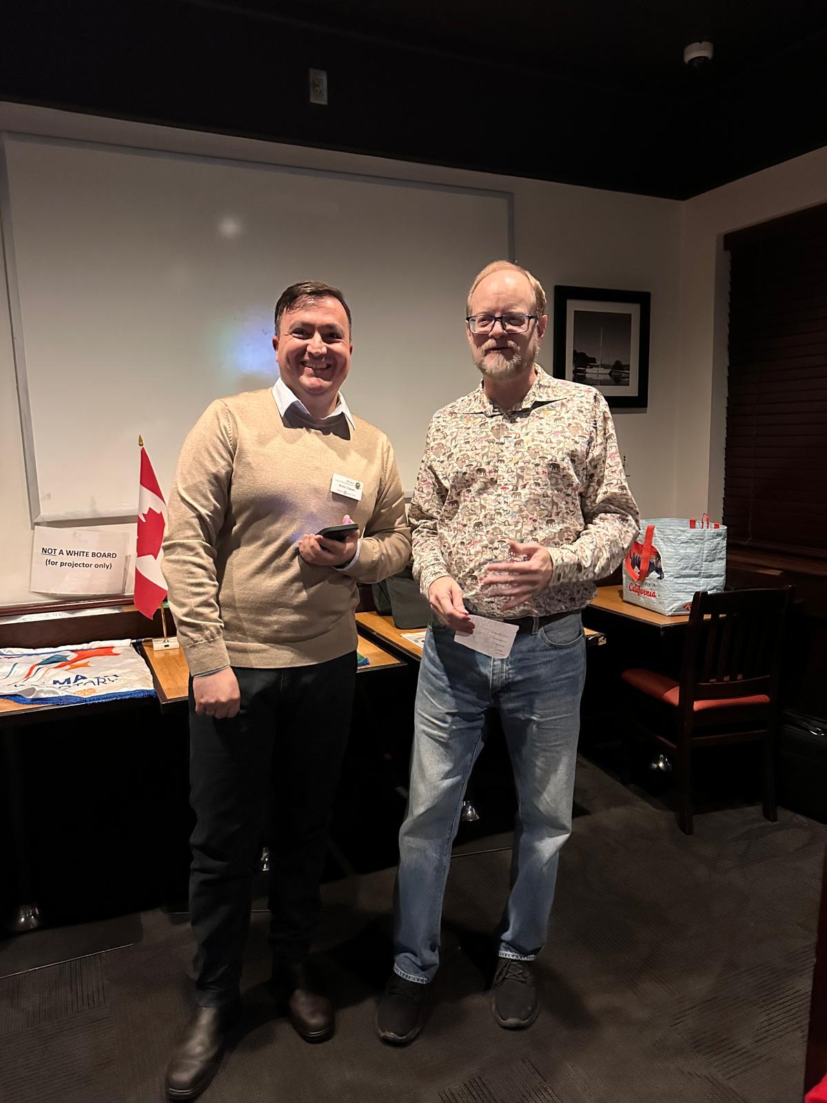 Closing out 2023At our final meeting for the year we held our Annual General Meetings and presented a membership plaque to Sheila Kirk. We also took the opportunity to thank the Garth, the owner at Boston Pizza and his team for providing us with a great space and service during our club meetings. ![]() ![]() |