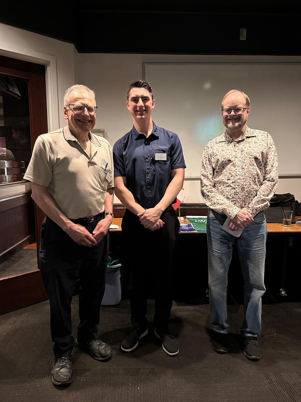 Presentation to JIBCOn behalf of the members of The Rotary Club of New Westminster Del Paterson presents a cheque to Christopher Duffin and Kathy Harms from the Justice Institute of BC